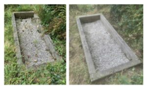 On Saturday 12th April 2025 Graham cleaned and painted the planter at the entrance to Cemetery between the to Lodges.